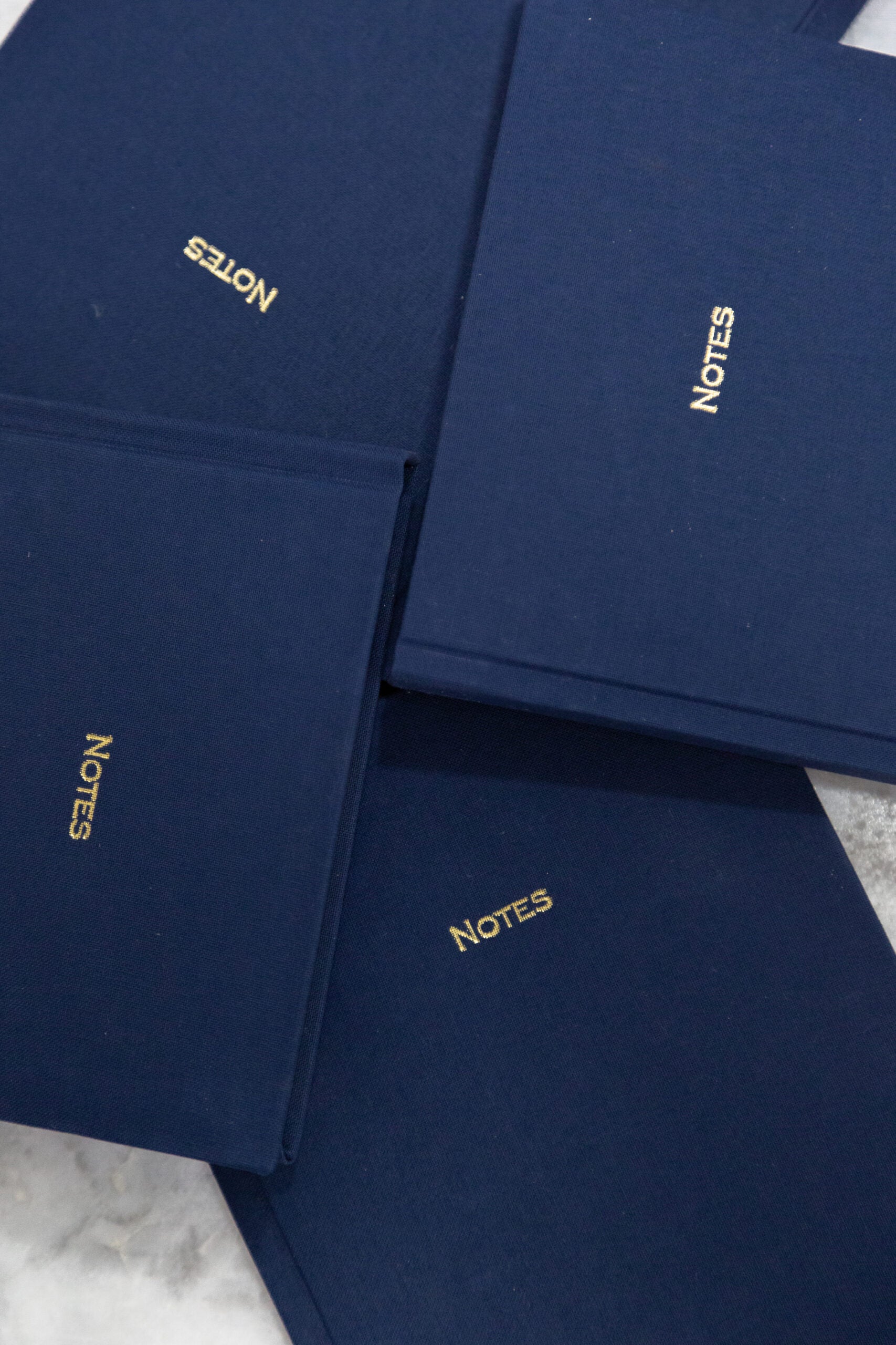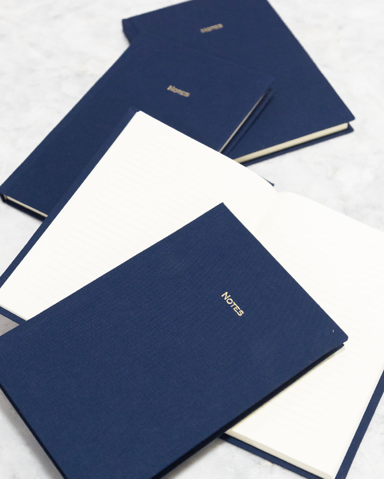 Una libreta multifacética que no pierde el estilo. En lino azul marino y hojas rayadas, es perfecta para juntas formales, para el curso que acabas de empezar o para un regalo corporativo.